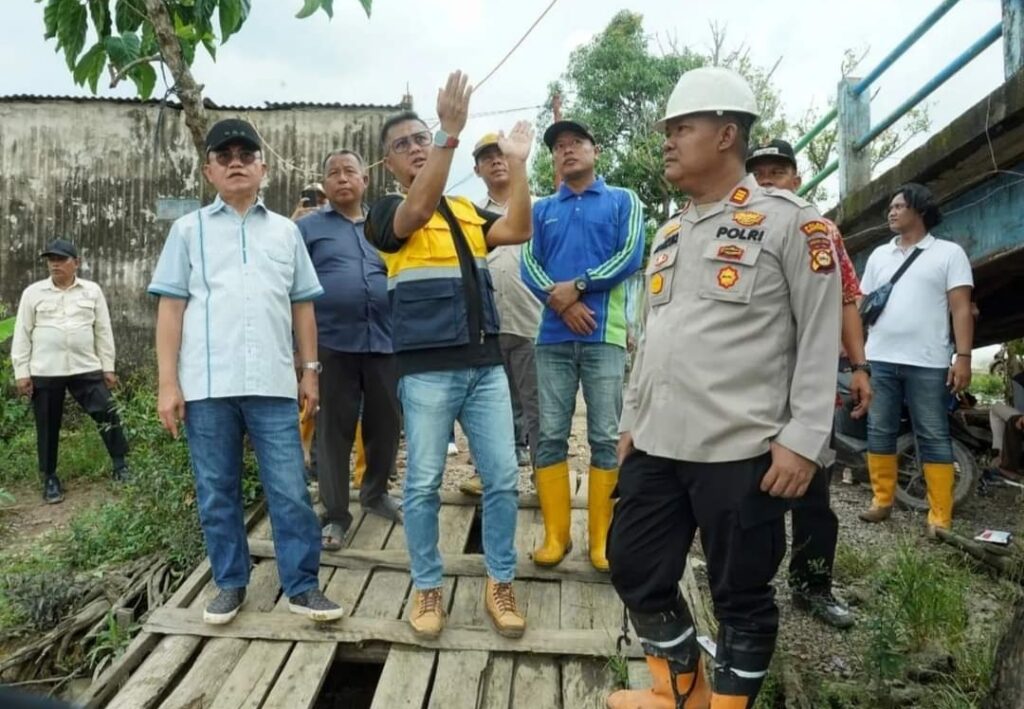 Bersama dengan rombongan, Pj. Bupati Banyuasin transit terlebih dahulu di Pos Subsektor Merah Mata dan langsung menuju jembatan beberapa hari sebelumnya roboh dan telah diperbaiki secara swadaya dan sekaligus cek Jalan Poros Desa Merah Mata menuju Upang Jaya.