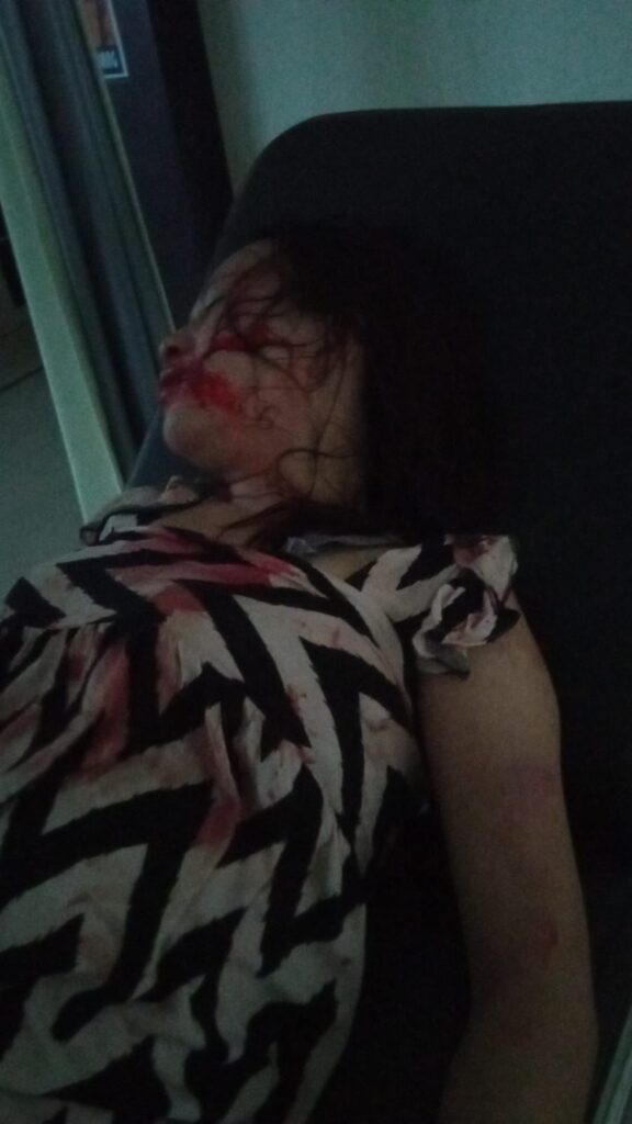 Serta menahan rasa sakit yang amat sangat karena luka lebam hampir disekujur tubuh dan patah hidung disertai muntah darah.