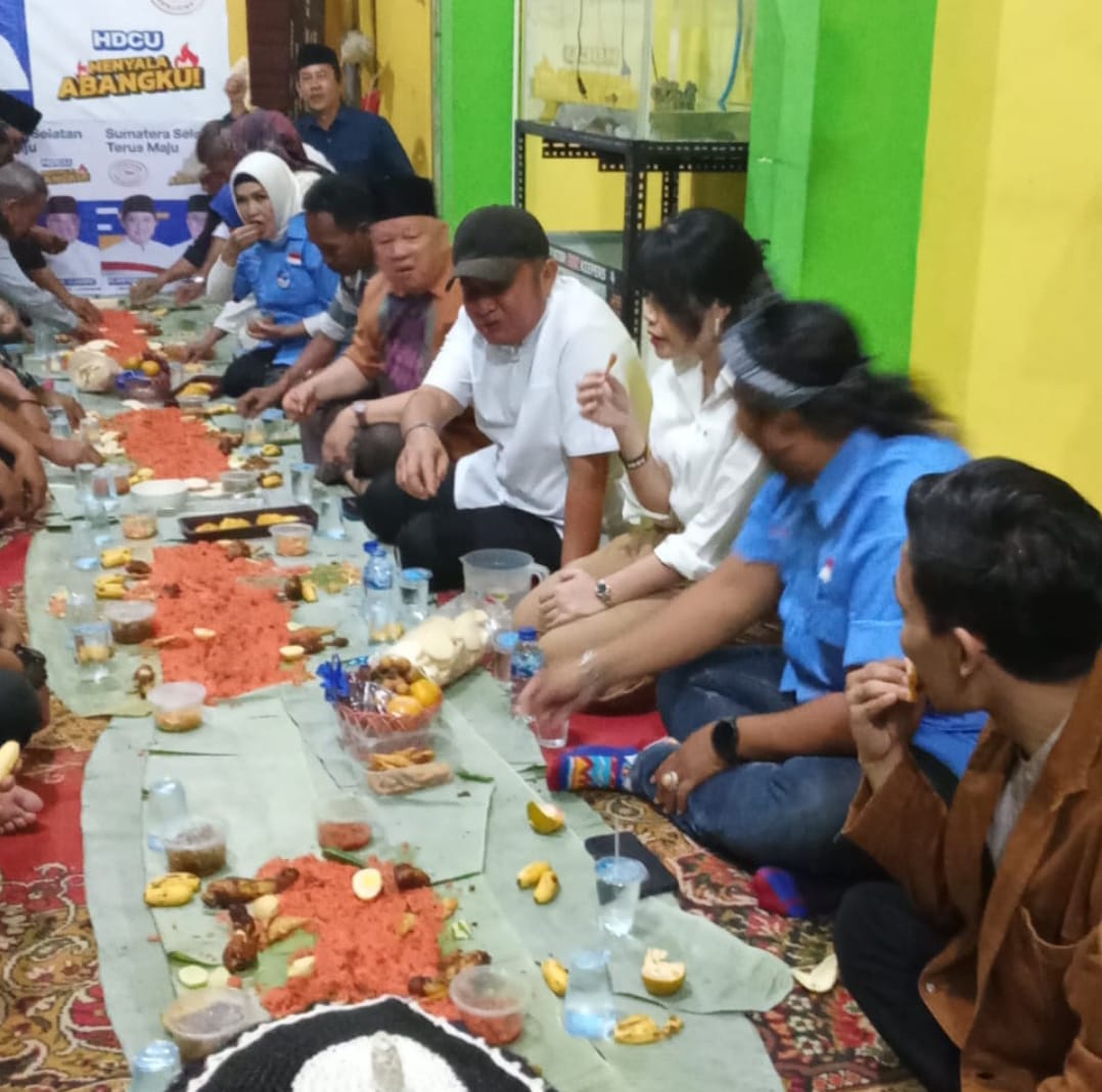 “Dan pada hari ini juga Bapak H. Hernan Deru Calon Gubernur Sumsel langsung meresmikan posko junjungan kuat dan sekalian memotong pita, dan dilanjutkan duduk/makan bersama yang telah dihidangkan sebagai ucapan terima kasih pada Tuhan Yang Maha Esa. Selesai makan Bapak H Herman Deru pamit pulang dan diantar oleh tim-tim junjungan kuat. (Nopi)