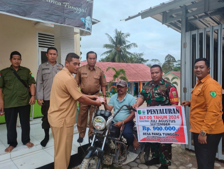 MUBA,sriwijaya hariini.com,,- Pendim0401/Muba – Babinsa Koramil 401-01/SL Kodim 0401/Muba Serda Saryanta menghadiri sekaligus lakukan pendampingan dan pengawalan kegiatan penyaluran bantuan langsung tunai dana desa (BLT DD) tahap III tahun 2024 di Desa Panca Tunggal kec. Sungai Lilin Kab. Musi Banyuasin. Rabu (11/9/2024).
