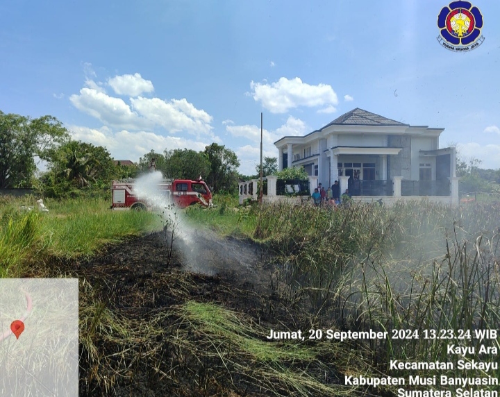 SEKAYU, MUBA,sriwijaya hariini.com,,- Selalu sigap, Team Satpol PP Damkar Kabupaten Musi Banyuasin kembali berhasil menjinakkan si jago merah yang melahap lahan dekat pemukiman warga di Perumahan Sawah Permai Depan Masjid Raya Sekayu hari ini, Jumat (20/09/2024).