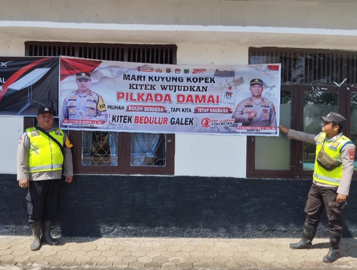 Adapun spanduk himbauan Pilkada tersebut bertuliskan “MARI KUYUNG KOPEK KITEK WUJUDKAN PILKADA DAMAI pilihan boleh berbeda tapi kita tetap saudara KITEK BEDULUR GALEK”.