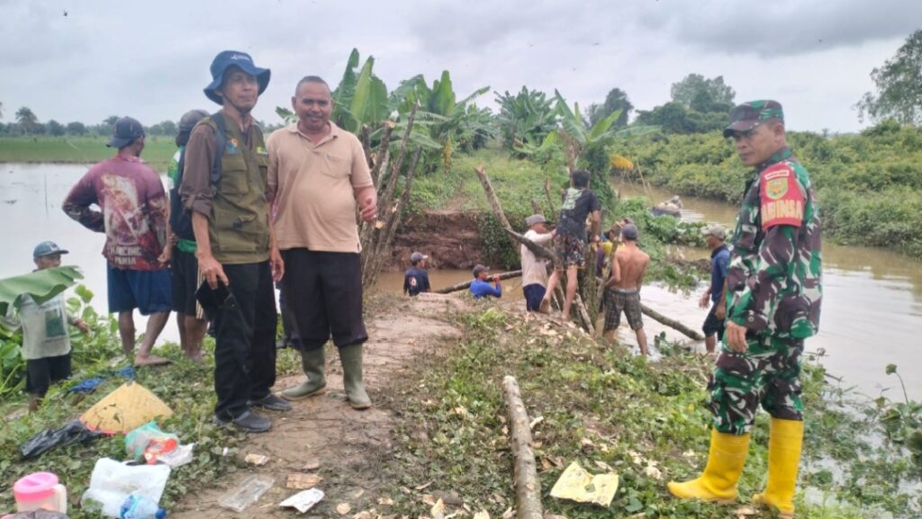 Pematang Palas, Sriwijaya-Hariini.com Petani di Dusun Alahan Desa Pematang Palas Kecamatan Banyuasin I Kabupaten Banyuasin secara gotong royong memperbaiki 6 titik tanggul utama program Optimalisasi Lahan Pertanian (OPLA) yang mengalami kerusakan, Akibat Pasang Air Sungai Yang Tinggi, Pada Rabu (22/01/2025).
