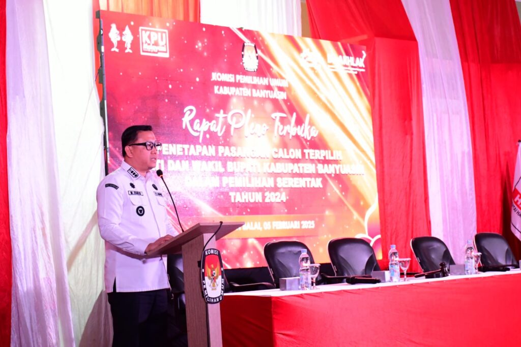 “Sebagai Pj Bupati saya ucapkan terima kasih atas kerja sama seluruh unsur yang terlibat dalam pelaksanaan Pilkada yang telah berlangsung secara aman dan kondusif hingga sampai ke penetapan hari ini,” katanya saat menyampaikan sambutannya dalam acara yang berlangsung di Aula Kantor KPU Banyuasin.