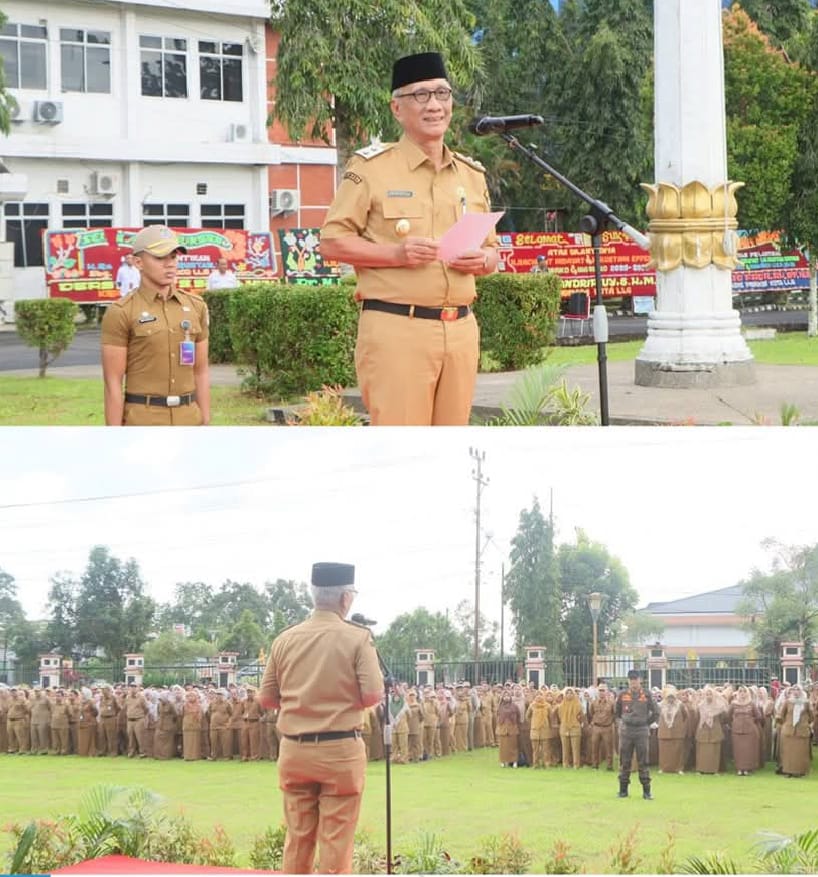 Wakil Wali Kota Lubuk Linggau, H Rustam Effendi memimpin apel bulanan pemerintah Kota Lubuk Linggau di Lapangan Kantor Wali Kota Lubuk Linggau, Senin (24/2/2025).