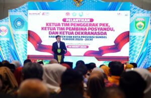 PALEMBANG,sriwijaya hariini.com,, – Hj Fatimah, istri Bupati Musi Banyuasin (Muba) H M Toha SH, resmi dilantik sebagai Ketua Tim Penggerak Pemberdayaan Kesejahteraan Keluarga (TP PKK), Ketua Tim Pembina Posyandu, dan Ketua Dekranasda Kabupaten Muba untuk periode 2025-2030.