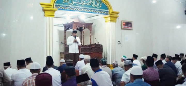 Wakil Walikota Prabumulih, Franky Nasril, S.Kom., M.M., melaksanakan salat isya dan tarawih bersama masyarakat di Masjid Al Hikmah, Kota Prabumulih, Senin (10/03/2025).