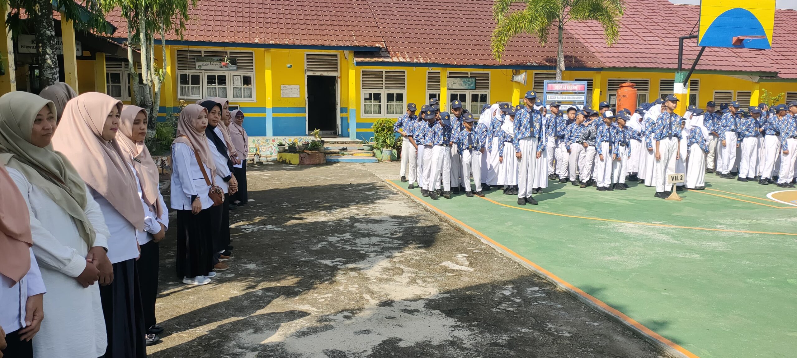 Para Guru dan Siswa-Siswi dengan semangat dan Antusias yang Menggelora Mengawali kembalinya Mereka Belajar dan mengajar disekolah, Tampak sekali semangat yang luar biasa memancar dari raut wajah para siswa-siswi dan para guru untuk Memulai kembali aktivitas masing masing yang sudah lebih dari Dua pekan mereka tinggalkan Pasca Cuti Bersama menjelang hari Raya idul Fitri.