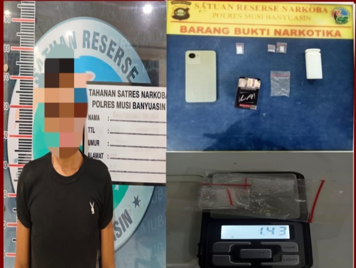 Saat dilakukan penggerebekan dan penggeledahan yang disaksikan oleh warga sekitar, petugas menemukan sejumlah barang bukti yang diduga kuat terkait tindak pidana narkotika. Barang bukti yang diamankan antara lain 3 (tiga) paket narkotika jenis shabu dengan berat bruto 1,43 gram, 1 (satu) buah plastik klip bening, 1 (satu) buah wadah plastik warna putih, 1 (satu) kotak rokok merk LA BOLD, dan 1 (satu) unit handphone Realme C30 warna hijau.