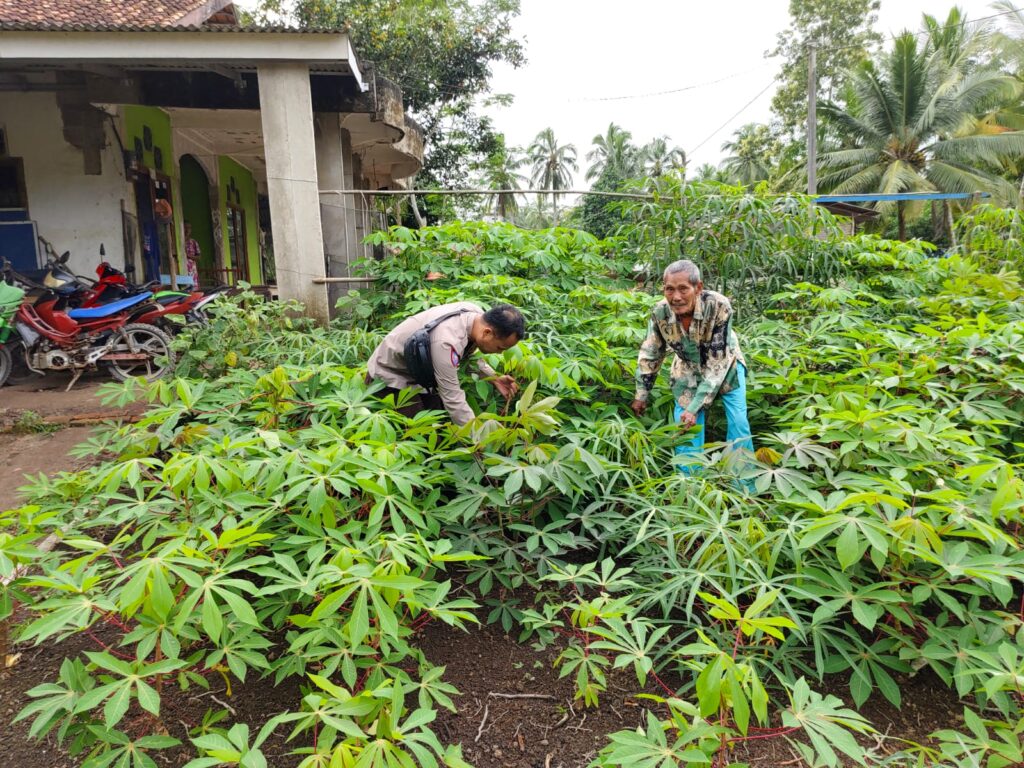 “Bripka Sahril melakukan pengecekan langsung ke lahan pekarangan warga Bapak Sultani untuk memastikan kesiapan lahan dan bibit singkong,” ujar Kapolsek Makarti Jaya Iptu Suhendri.