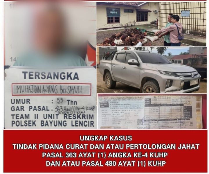 Hal ini terjadi pada Selasa, 8 Juli 2025 sekitar pukul 22.00 WIB di Desa Tampang Baru, Kecamatan Bayung Lencir, Kabupaten Muba. Pelaku bernama Muhajidin alias Yung (55), warga Desa Tampang Baru, ditangkap oleh Polsek Bayung Lencir setelah melakukan pencurian buah sawit bersama dua rekannya yang kini masih DPO, yakni RUDI dan PIAN.