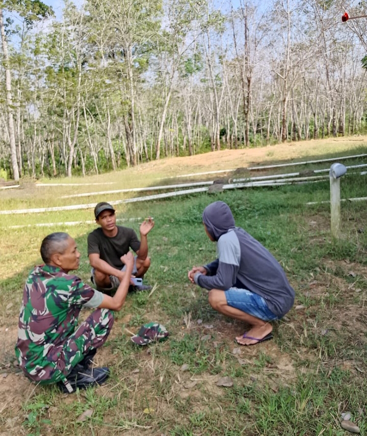 Babinsa koramil 401-01/SL Sertu Bambang Setiawan dalam menjalin keakraban dan Melaksanakan Komsos dengan Warga binaan bertempat di Talang Buluh Kec. Batanghari Leko Kab. Muba Jum’at (18/7/2025).