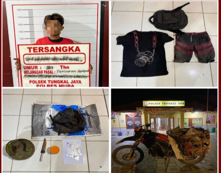 MUBA,sriwijaya hariini.com,, – Polsek Tungkal Jaya Polres Musi Banyuasin telah mengamankan pelaku tindak pidana pencurian dengan pemberatan (Curat) yang terjadi di Dusun IV Desa Peninggalan, Kecamatan Tungkal Jaya, Kabupaten Musi Banyuasin, pada Rabu (06/08/2025) Pagi sekitar pukul 11.30 WIB.