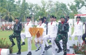 Detik-detik pengibaran bendera tepat pukul 09:40 WIT menjadi momen paling ditunggu. Lagu kebangsaan Indonesia Raya bergema, mengiringi berkibarnya Merah Putih di langit Bumi Serasan Sekate.