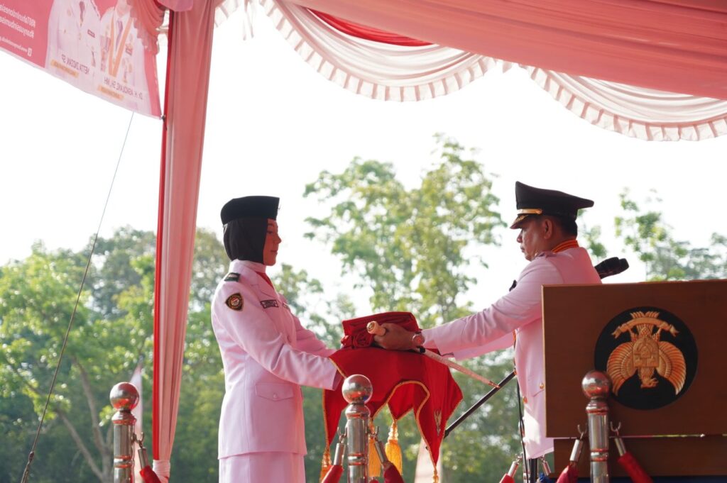Pangkalan Balai, Sriwijaya-Hariini.com, Upacara bendera Hari Ulang Tahun (HUT) ke-80 Kemerdekaan Republik Indonesia di Halaman Kantor Bupati Banyuasin, Minggu pagi (17/8/2025), berlangsung khidmat.
