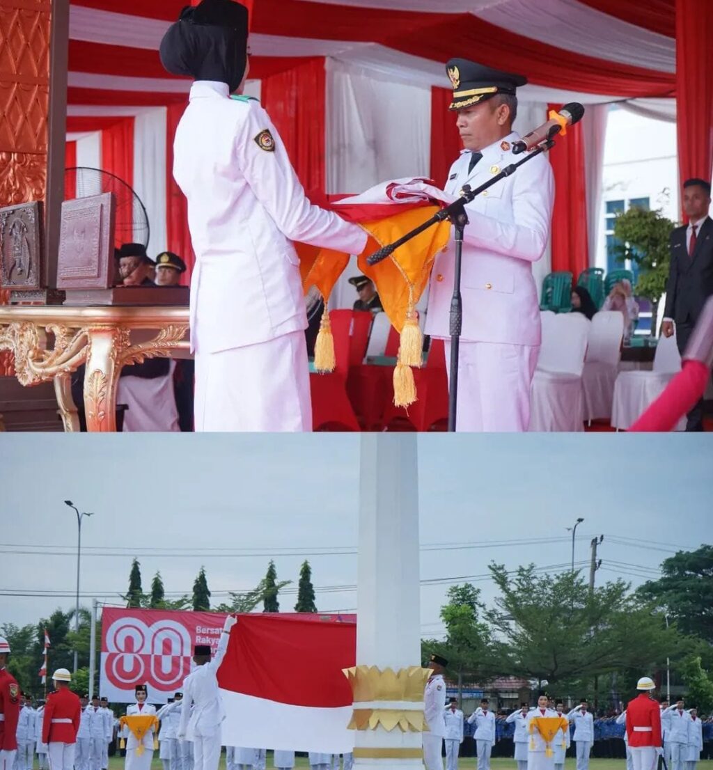 Wakil Bupati Musi Rawas memimpin prosesi penurunan bendera merah putih dan menerima Bendera merah putih dari Pasukan Pengibar Bendera Pusaka (PASKIBRAKA) Kabupaten Musi Rawas.