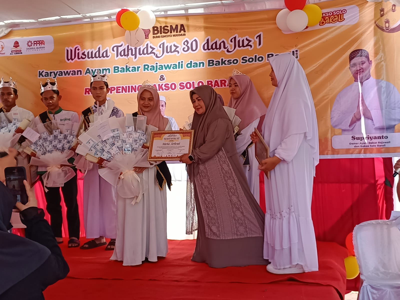 Supriyanto Owner Ayam Bakar Rajawali dan Bakso Solo Barali dalam hal ini diwakilkan oleh manajemennya dalam sambutan menyampaikan bahwa, bagi kami, bisnis bukan hanya soal melesat secara keuntungan, tetapi juga bagaimana nilai dakwah dan manfaatnya bisa ikut melesat,” ujar manajemen Bakso Solo Barali.