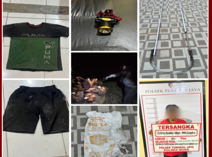 MUBA,sriwijaya hariini.com,, – Polsek Tungkal Jaya mengamankan pelaku tindak pidana pencurian dengan pemberatan (Curat) di area perkebunan PT Berkat Sawit Sejati (BSS), Desa Pangkalan Tungkal, Kecamatan Tungkal Jaya, Kabupaten Musi Banyuasin. Pelaku Sendiri berinisial N warga Desa Saut, Kecamatan Batang Hari Leko, Kabupaten Musi Banyuasin.