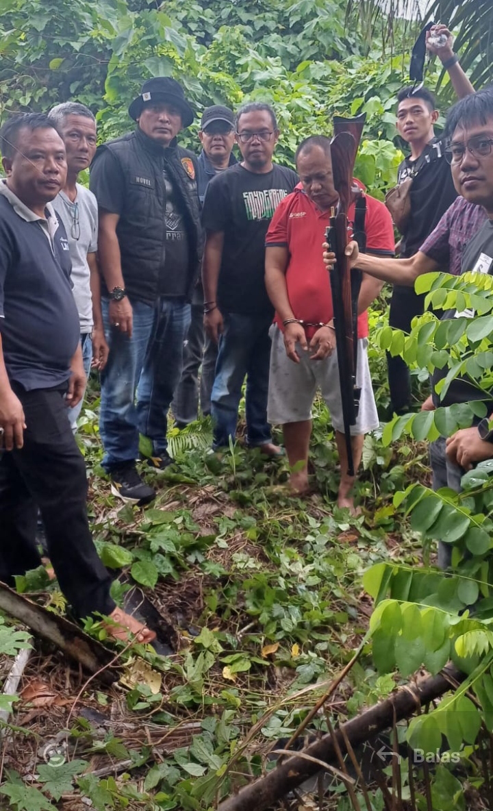 Kedua terduga pelaku masing-masing berinisial M.P. (44), seorang Pegawai Negeri Sipil (PNS), dan T.H. (16), seorang pelajar. Dari tangan mereka, petugas turut mengamankan barang bukti berupa satu pucuk senapan angin, satu kantong amunisi, dan sepasang sepatu bot yang diduga digunakan saat kejadian.
