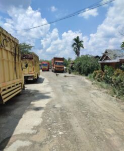 Masyarakat sudah geram lantaran jalan tersebut selalu berdebu yang disebabkan dari berlalu lalangnya kendaraan PT. HKI yang mengangkut material untuk pembangunan jalan tol.