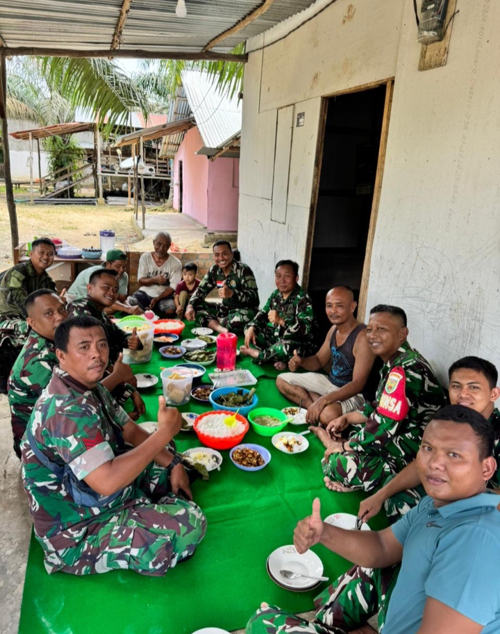 Momen santap siang bersama ini berlangsung sederhana namun hangat di salah satu sudut lokasi TMMD. Dansatgas dan personel duduk bersila, berbagi hidangan, sambil berbincang santai. Kehadiran Dansatgas di tengah-tengah prajurit menunjukkan kepemimpinan yang dekat dan merakyat.