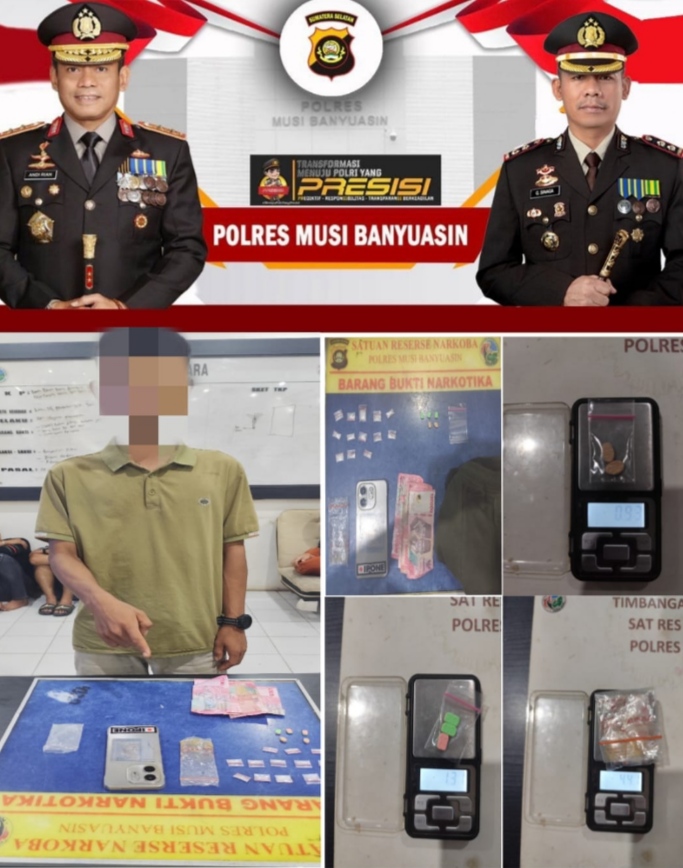 Penangkapan pertama terjadi Rabu (5/11/2025) sekitar pukul 19.30 WIB. Petugas mengamankan Indra Dwi Ariansyah (22), warga Desa Karang Agung Kecamatan Lalan, di sebuah kontrakan di Kelurahan Keluang. Dari tangan pelaku, polisi menyita 13 paket sabu seberat 4,41 gram, lima butir pil berlogo LV dan Maserati, uang tunai Rp500 ribu, serta satu unit ponsel.