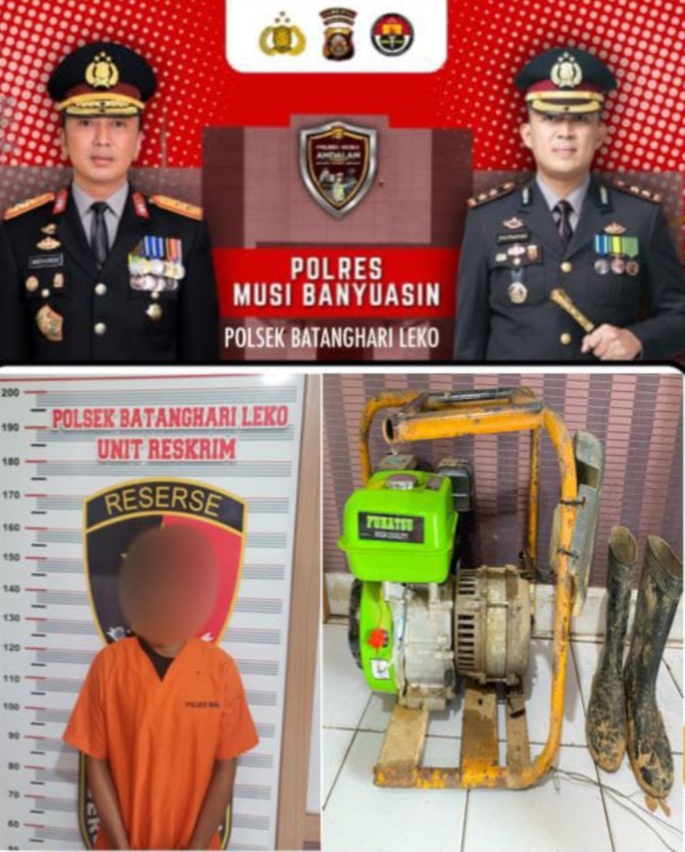 Muba,sriwijaya hariini.com,, – Unit Reserse Kriminal (Reskrim) Polsek Batang Hari Leko, Polres Musi Banyuasin (Muba), berhasil mengamankan seorang pelaku pencurian dengan pemberatan berinisial MI (26). Pelaku diketahui merupakan warga Dusun II Desa Pangkalan Bulian, Kecamatan Batang Hari Leko, Kabupaten Muba.