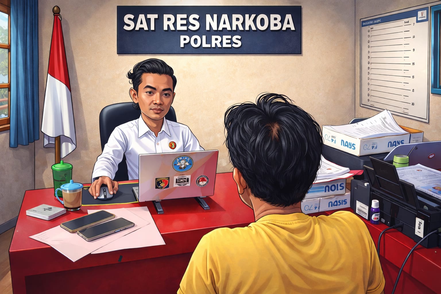 Atas perbuatannya, tersangka dijerat Pasal 114 Ayat (1) jo. Pasal 132 Ayat (1) Undang-Undang Nomor 35 Tahun 2009 tentang Narkotika, serta ketentuan dalam Undang-Undang Nomor 1 Tahun 2023 tentang KUHP dan Undang-Undang Nomor 1 Tahun 2026 tentang Penyesuaian Pidana.