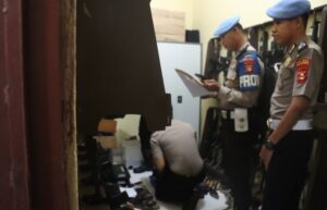 Muba,sriwijayahariini.com,, – KAURBINPLIN Bid Propam Polda Sumatera Selatan AKBP Lukmanul Hakim, S.H.,M.Si Beserta Personil Bid Logistik Polda Sumsel didampingi Kabag Log Polres Muba Kompol Ali Rozikin, S.H Bersama Kanit Paminal Propam Polres Muba IPTU Manalu, S.H, Melakukan Pengecekan Senjata Api dan Amunisi digudang Senpi Mapolres Muba, Selasa, (07/04/26).