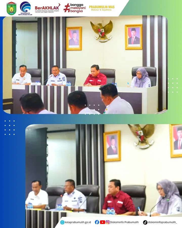 — Wali Kota Prabumulih H. Arlan didampingi Sekretaris Daerah H. Elman, S.T., M.M., memimpin Rapat Koordinasi Penyaluran Cadangan Pangan Pemerintah (CPP) untuk bantuan pangan beras alokasi bulan Februari–Maret Tahun 2026. Kegiatan ini berlangsung di Ruang Rapat Lantai 1 Pemerintah Kota Prabumulih, Rabu (08/04/2026).